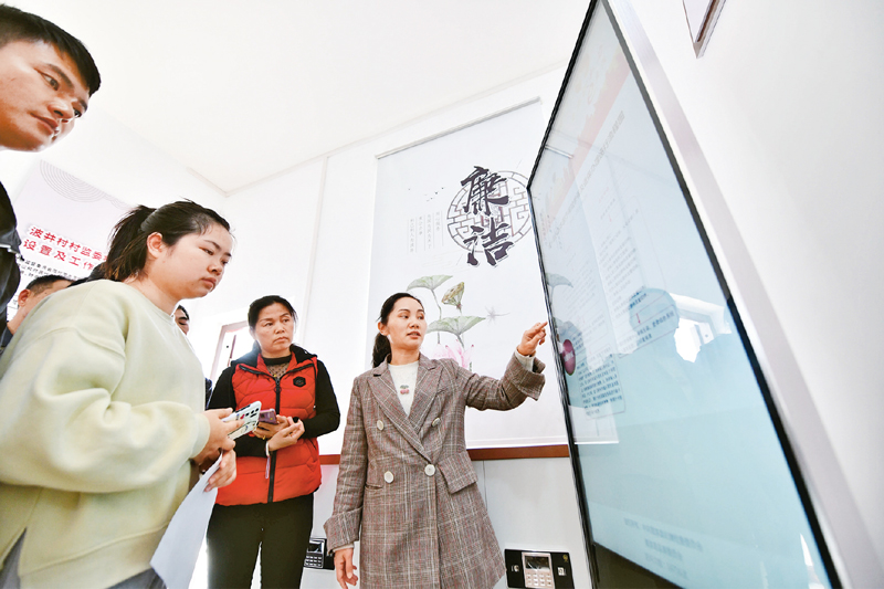 广西鹿寨县纪委监委探索微权力监督“互联网+”新模式,打造集廉政知识宣传、廉情信息收集、全天候网上监督等功能为一体的“廉情驿站”,村民通过手机就能对村内事务进行24小时“云监督”。 图为2021年12月16日,在广西鹿寨县鹿寨镇波井村政务服务中心,村民学习使用“廉情驿站”。 新华社记者 黄孝邦/摄